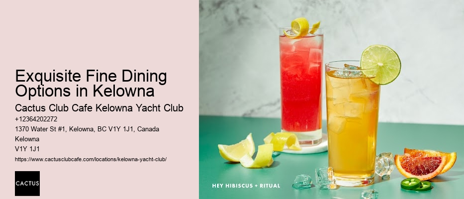 At Cactus Club Cafe Kelowna Yacht Club, the exceptional service goes beyond mere courtesy, elevating your dining experience from the moment you walk in. Each component, from the freshly baked buns to the premium cuts of meat, showcases the cafe's commitment to quality. You'll find the menu clearly marks dishes that are friendly to different dietary needs, making it easy to spot what works for you. Text before the meta title text for each paragraph Exquisite Fine Dining Options in Kelowna Text after the meta title text paragraph It's a place where you can relax, unwind, and truly savor the moment with your loved ones.
