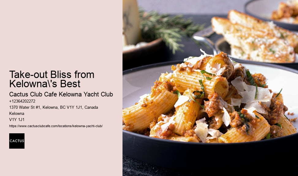 At the heart of the Cactus Club Cafe's appeal is its wide-ranging menu, catering to every palate with an array of carefully crafted dishes. Text before the meta title text for each paragraph Take-out Bliss from Kelowna's Best Text after the meta title text paragraph So, go ahead, explore the menu and let these masterful mixes elevate your dining experience to new heights. Whether you're wrapping up a day of work or kicking off your vacation, Happy Hour at the Cactus Club is where you'll want to be. Take-out Bliss from Kelowna's Best Moreover, the staff's knowledge about the menu is remarkable. What sets the service apart at Cactus Club Cafe is the genuine care and enthusiasm the staff shows.