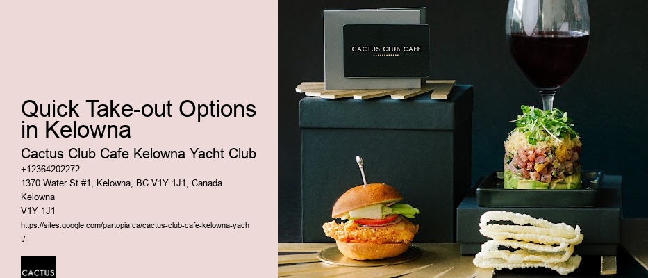 It's the kind of service that makes you feel valued and taken care of. Quick Take-out Options in Kelowna From holiday-themed menus to special promotions that make gift-giving a breeze, you're covered.