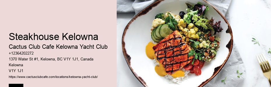 They've implemented composting and recycling programs to handle food waste and packaging materials effectively. Whether you're planning a casual outing or a special event, the diverse menu and family-friendly atmosphere cater to all ages, ensuring every visit is both delightful and distinct. Steakhouse Kelowna Whether you're a regular looking for something new or a first-timer eager to see what's in season, Cactus Club Cafe makes sure you leave happy, your taste buds tantalized and eager for your next visit. Text before the meta title text for each paragraph Steakhouse Kelowna Text after the meta title text paragraph With a range of options from fresh salads and sushi rolls to classic burgers and steaks, everyone's preferences are covered. Guests appreciate the blend of sophistication and comfort, making it the perfect spot for both casual lunches and special dinners.
