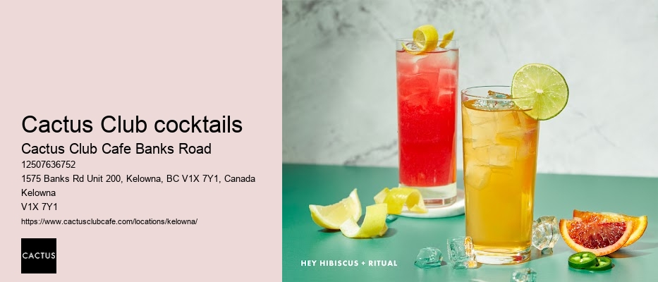 They'll share insights on which wine enhances the flavors of your meal or which cocktail adds a refreshing twist to your dining experience. So, when you choose to dine here, you're making a choice that feels as good as it tastes. Text before the meta title text for each paragraph Cactus Club cocktails Text after the meta title text paragraph You'll find his passion for gastronomy reflected in every dish that graces your table.